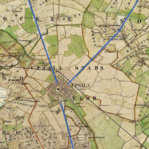 I mitten på 1600-talet verkar det ha varit högsta mode att rita raka streck. År 1643 fick Uppsala sin första stadsplan och den innehöll de rektangulära kvarteren som vi ser idag. Nu nöjde man sig inte med detta. Staden utrustades även med nya tillfartsvägar. De blev både långa och raka och man menar att dessa ritades med linjal. Tittar man på en karta är det svårt att argumentera emot detta.